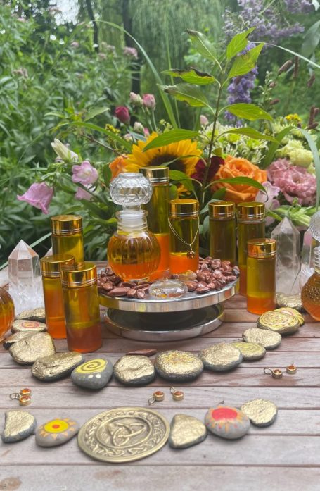 In meiner Werkstatt entstehen mit Hingabe und in Verbindung zur geistigen Welt einzigartige Zauberwesen, lichtvolle Ritualöle, feine Aurasprays und gechannelte Bilder voller Energie.